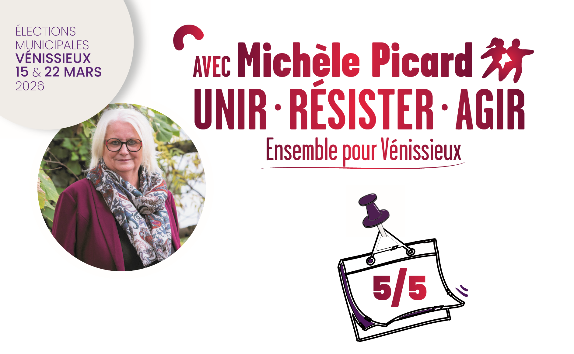 6 décembreAvec Michèle Picard, UNIR RÉSISTER AGIR, Ensemble pour Vénissieux Face aux crises, nous voulons engager une nouvelle étape démocratique et citoyenne. Pour Unir, Résister, Agir, rédigeons ensemble ce projet lors de 5 réunions publiques thématiques Vénissieux, une ville engagée pour l’enfance, (…)