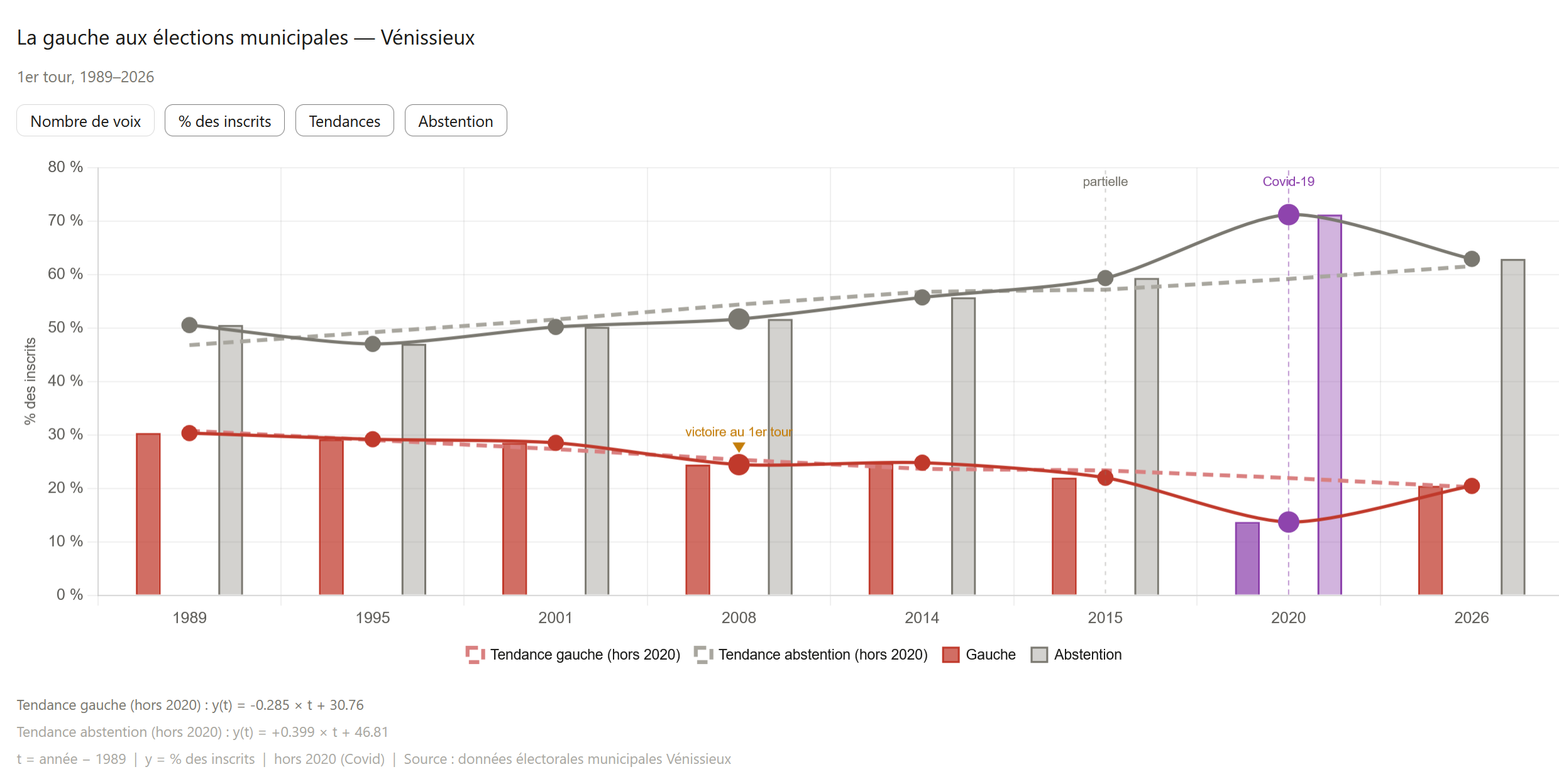 Bien sûr, c’est le résultat d’une crise démocratique profonde en France, dont le tournant est le référendum de 2005 et le NON populaire bafoué. On peut comprendre que beaucoup de gens pensent que de toute façon, voter ne change rien. Et puis, il y a la crise sociale, beaucoup ont d’autres priorités que la vie démocratique. Pour certains, des maires de droite ou de gauche, ça ne change pas grand chose face à la désindustrialisation ou aux trafics, et pour beaucoup, un maire communiste, socialiste, ou insoumis, c’est pareil. Certains nous disent depuis leur inquiétude, mais trop tard ! Certains nous disent aussi que, justement Vénissieux étant bien gérée, ils pensaient qu’il n’y avait pas de risque… et bien si !