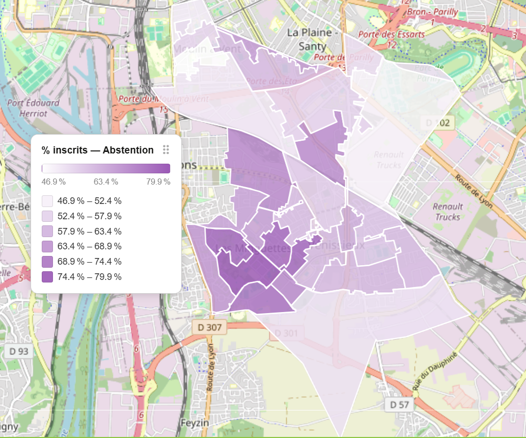 Bien sûr, il y a eu une véritable campagne de rabattage d’électeurs le jour du vote, pratique interdite mais que certains avait mené en 2014 pour le candidat socialiste, en 2020 pour le macroniste, cette fois pour un insoumis. Sur trois bureaux de vote des minguettes, c’est plus de 100 voix, plus de 300 en tout, entre les deux tours. Et pourtant l’abstention reste proche de 60% dans ces bureaux, une des plus fortes de la ville.