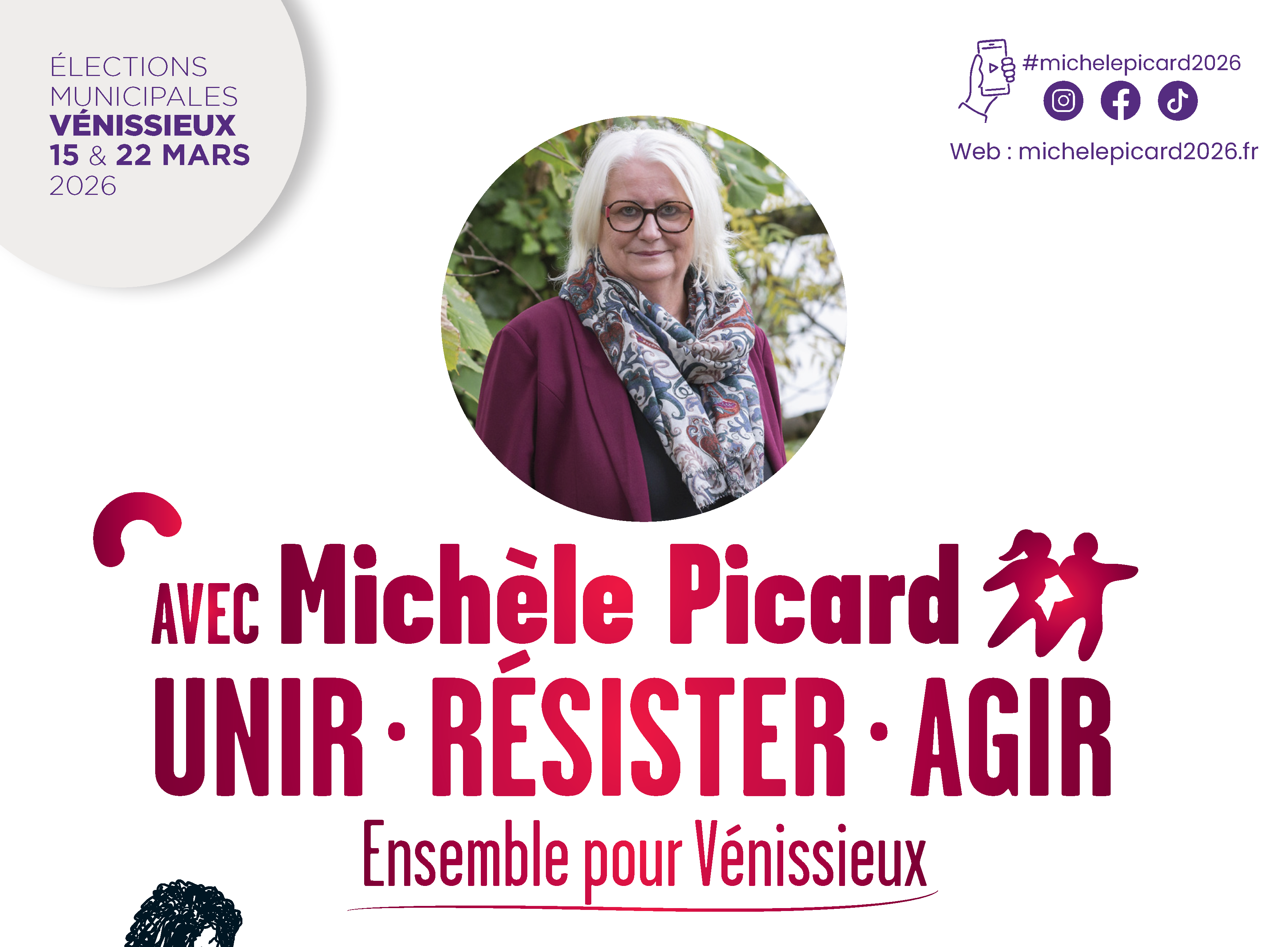 8 novembreAvec Michèle Picard, UNIR RÉSISTER AGIR, Ensemble pour Vénissieux Face aux crises, nous voulons engager une nouvelle étape démocratique et citoyenne. Pour Unir, Résister, Agir, rédigeons ensemble ce projet lors de 5 réunions publiques thématiques Dans le désordre politique, un président qui (…)