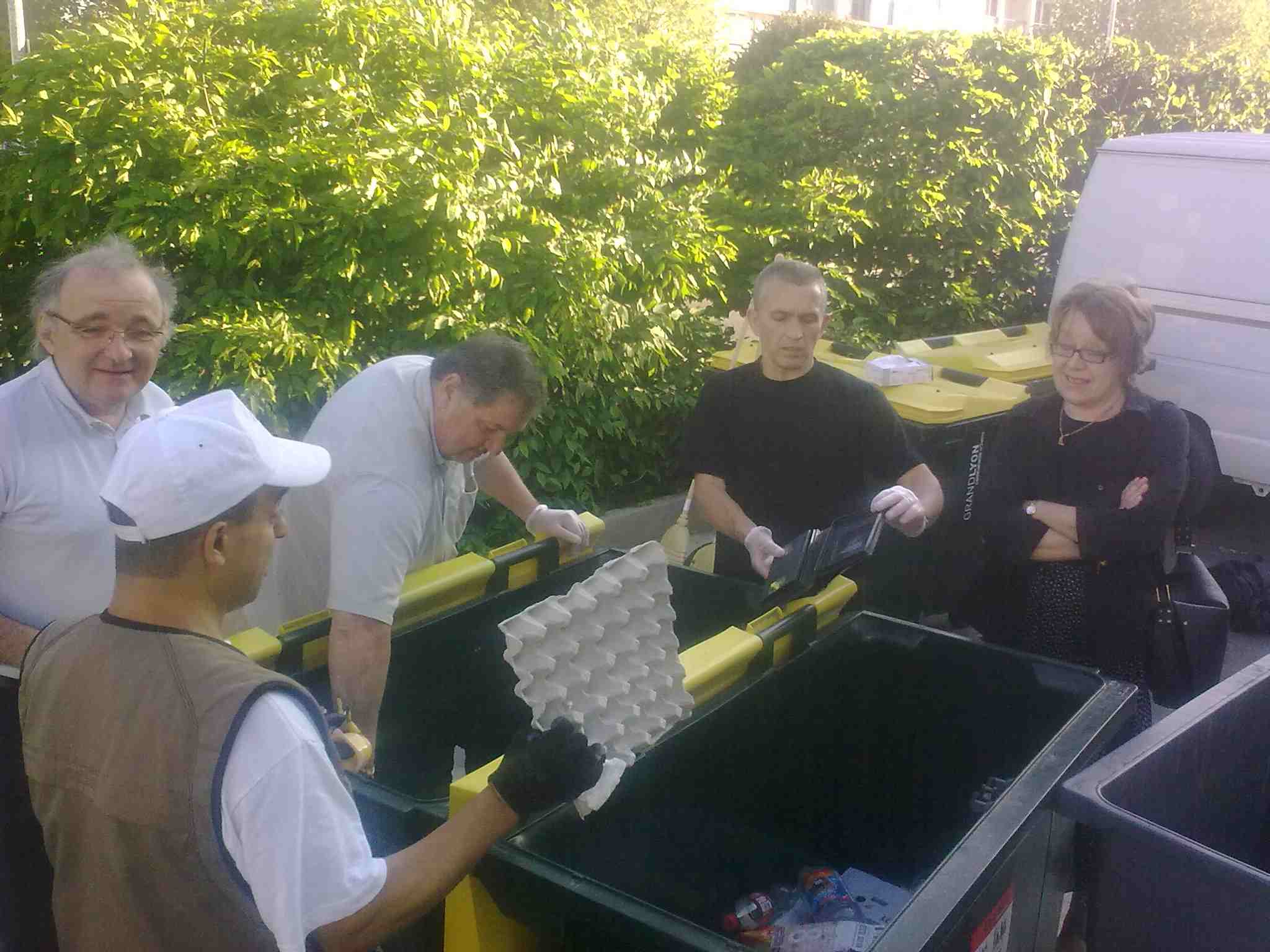 Pour cette première expérience, on se retrouve avec les agents de la Sacoviv à Max Barel… Voilà la poubelle pleine. On se met au tri