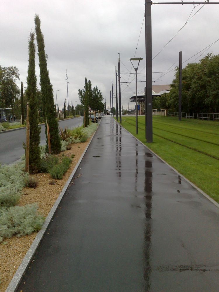 Mais si les pistes cyclables sur le tramway sont bien faites, il reste quelques interrogations. Par exemple, quand on arrive à la gare tram et train… La piste s’arrête et j’avoue ne pas comprendre par où il faut passer… par la chaussée voiture ?